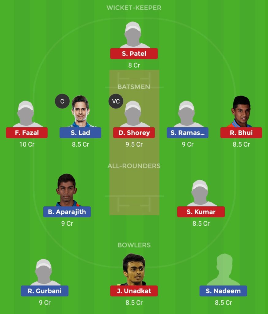 Batsmen – Faiz Fazal, Dhruv Shorey, Ricky Bhui (Doubt: Ganesh Satish, Nikhil Gangta)